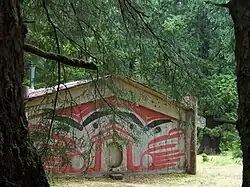 In 1987, a longhouse named Looking Around and Blinking House was built at Hlk'yah G̱awG̱a.[4] Designed by Haida carver and activist Guujaaw[5] and painted by Haida artist Robert Davidson, the longhouse provided a gathering place for Haida protesters who were forming road blockades in an attempt to stop logging on the island.[4]