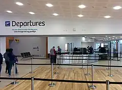 Hobart Airport has two passenger terminals. In 2007, the two terminals were connected in a $15 million[23] development to meet new Commonwealth legislation that requires all checked luggage to be X-rayed.[24] In 2008, the airport received a commendation for public architecture at the Tasmanian Chapter of the Australian Institute of Architects, for the new terminal upgrade.[25] The airport currently maintains a combined international, domestic and general aviation apron. Provisions have been made to create a dedicated general aviation apron to the south of the one currently in use.[6] The 2022 draft masterplan confirms that the terminal building will be increasing in size from the current 12,000 m2 (129,167 sq ft) to around 23,000 m2 (247,570 sq ft) in the medium term.