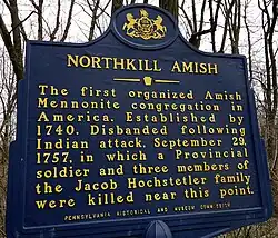 - ^ a b Laura Klotz, "Northkill Amish," Historical Marker Database, Feb 7, 2023