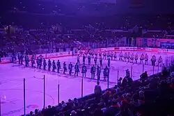 During the month, some players wear equipment specially painted purple to raise awareness for the initiative.[11] In addition, each of the league's 32 teams designates at least one of their home games as "Hockey Fights Cancer Awareness Night/Day" to raise money.[12][13] During these host games, the teams donate proceeds from 50/50 raffles, offer numerous promotions and donate tickets to hospitals and causes that support the fight against cancer.[14] $1.1 million was raised in October 2010, bringing the charity's 13-year total to over $12 million.[8]