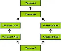 Teams finishing in the bottom two places of each grade after the regular season are relegated to the next lowest grade in that competition. For example, the teams finishing 9th and 10th in VA will be relegated to VB for the next season. Teams being relegated from VB to VC will go to the most appropriate district of VC if possible, with one team going to each district.