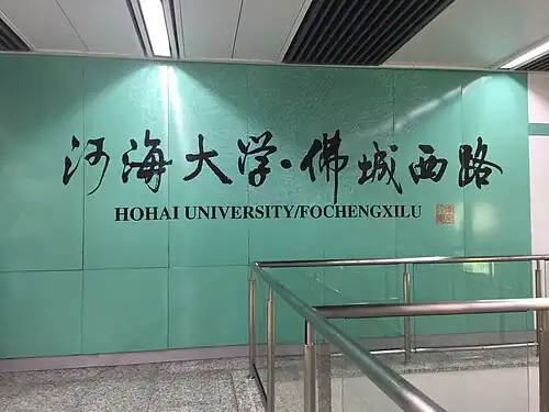 Hohai University / Fochengxilu station (Chinese: 河海大学·佛城西路站; lit. 'Hohai University / Focheng West Road'), is a station of Line S1 of the Nanjing Metro. It began operations on 1 July 2014.[1]