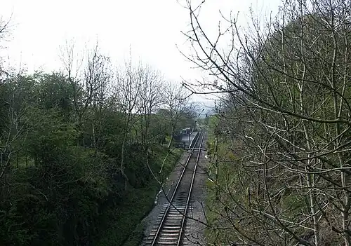 The halt was the first extension on the railway. The location is called Holywell. The halt was constructed so passengers could view the Craven Fault geological site.