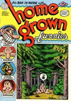 Home Grown Funnies is a single-issue underground comic book written and illustrated by Robert Crumb. Containing stories with staple Crumb characters Whiteman, the Snoid, and Angelfood McSpade, Home Grown Funnies went through sixteen printings by Kitchen Sink Press, selling at least 160,000 copies, and has been referred to as one of Crumb's longest-lived comics.[1]