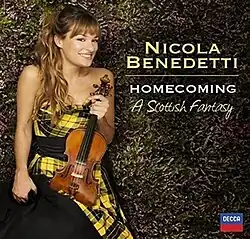 Homecoming – A Scottish Fantasy is the seventh studio album by Scottish violinist Nicola Benedetti. She describes it as a deeply personal blend of classical and Scottish traditional music.[1] The more classical tracks are performed with the BBC Scottish Symphony Orchestra (tracks 1–5, 7, 14). The Gaelic songs are sung by Julie Fowlis (tracks 11, 13).