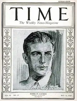 In 1905, he married Carlota Dolley, a student at the Pennsylvania Academy of Fine Arts and later a painter of miniatures. They had three children: Augustus, Carlota, and Harold. Saint-Gaudens was featured on the cover of Time magazine for its 12 May 1924 edition, in connection with his direction and promotion of the annual Carnegie International art exhibition.[2]