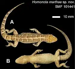 1. ^ Homonota marthae at the Reptarium.cz Reptile Database. Accessed 26 January 2019.