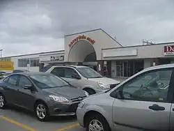 In May 2009, it had two anchor stores (a No Frills supermarket and a flea market), a restaurant and dental office.[3] The mall's No Frills supermarket closed in June 2013, and the entire mall was shuttered and locked up later that year, ending its 40 years of operation. A portion of the parking lot beyond Paulart Drive and next to the old Walmart site is being used to store empty trailer units.