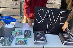 At the one-year anniversary memorial of Siege of the Hong Kong Polytechnic University and the Siege of the Chinese University of Hong Kong, Hong Kong citizens put together a "SAVE 12" sign using locks on a wired fence outside of Polytechnic University. The locks have the 12 presumed detainees' names and messages such as "send them home" written on them.[104]