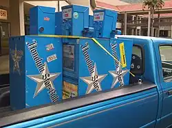 Star-Bulletin vending machines being hauled away on the last day of circulation