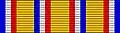 The medal hangs from a 37mm wide silk moiré ribbon of red on the right edge watering into yellow across its width. The ribbon bears a rosette of the same colours to indicate that it is an award "for exceptional services".[2]