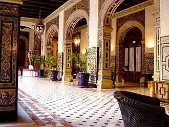 Hotel Alfonso XIII is a historic hotel in Seville, Spain, located on Calle San Fernando, next to the University of Seville.[1] Designed by the architect José Espiau y Muñoz, it was built between 1916 and 1928 especially for the Ibero-American Exposition of 1929. It officially opened on April 28, 1929, with a sumptuous banquet attended by King Alfonso XIII and Queen Victoria Eugenie of Battenberg. The hotel is owned by the City of Seville and managed by The Luxury Collection division of Marriott International.