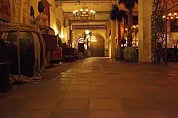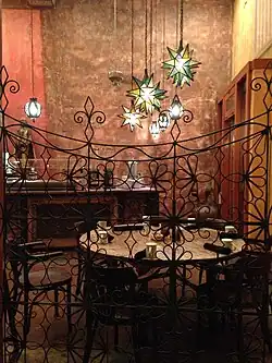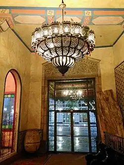 From 1976 until 2014, the interior was decorated by Arabian-inspired items, such as fabric swags, carpets, jeweled lanterns, and colored glass.[10] As part of the overhaul, a liquidation sale featuring the items from the hotel took place from December 3 to December 31, 2015.[33]