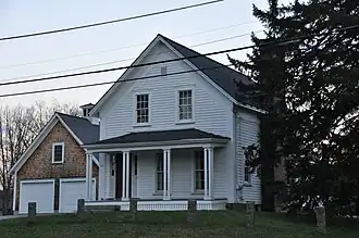 It is located in northern Reading, on the east side of Main Street (Massachusetts Route 28, a major artery), between its junctions with Brentwood and Fairchild Drives. The lot on which it is set backs onto Pearl Street, which follows a more undulating north–south route than Main Street. In front of the house are a series of granite posts, which originally supported a rail fence. The house is 2+12 stories in height, of wood-frame construction, and has a gabled roof and clapboarded exterior. The gable ends of the roof have no returns, and it has a broad cornice. The first-floor front windows are full-length, and are topped by shallow pediments. The full-width front porch is supported by paired columns. An ell extends to the left, joining the house to a garage.[2]