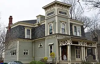 The House at 230 Melrose Street in the Auburndale section of Newton, Massachusetts, is one of the village's most elaborately decorated houses. The two story wood-frame house was built c. 1870, and features predominantly Second Empire styling, including a distinctive tower above the entry that is capped by an extended bracketed cornice. The porch features Stick style valance decoration, a feature not usually seen until later in the 19th century.[2]