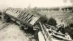 A railway accident between Houten and Schalkwijk occurred in the Netherlands on 7 June 1917 around 4:11 pm Amsterdam time. The locomotive and the first eight coaches were detached from the rest of the train and came to a standstill. Eleven coaches derailed, including one that rolled off the embankment, causing enormous damage.[1] 11 people were injured. Queen Wilhelmina, who was in the train, was unharmed in the accident.