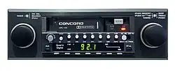 Concord mobile audio equipment quickly became one of the leading sellers of high-end, in-dash automobile cassette deck receivers, amplifiers and accessories. The 1982 Concord HPL-130 pioneered the use of Sendust tape playback heads, dbx noise reduction circuitry as well as Dolby noise reduction circuitry, four-gang quartz digital tuning and an audio reproduction range of 30-20,000 Hz, at less than 0.08% distortion, rivaling many in-home audio receivers at a retail price of $ 600 (equivalent to $1,955 in 2024).[29] The Concord mobile product lineup included equalizers, amplifiers and external noise-reduction units designed to seamlessly enhance an in-dash unit's performance.