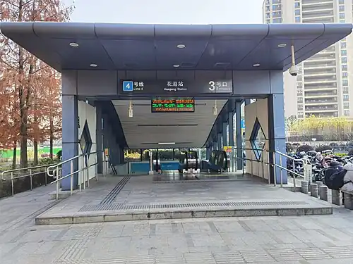 Huagang (Chinese: 花港) is a station on Line 4 of the Suzhou Metro. The station is located in the Wujiang District of Suzhou. It has been in use since April 15, 2017, the same time of the operation of Line 4.[1]