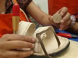 Making a huarache sandal at a workshop at the Museo de Arte Popular, Mexico City
