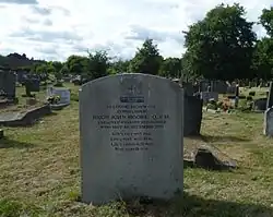 Hugh Moore's grave at Bells Hill Burial Ground, Chipping Barnet.