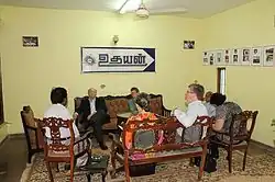 Senator Hugh Segal, Canadian High Commissioner in Sri Lanka Shellie Viding and other delegates met E. Saravanapavan at the Uthayan newspaper premises in Jaffna, 2013