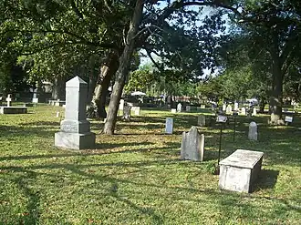 The Huguenot Cemetery (also known as the St. Augustine Public Burying Ground) in St. Augustine, Florida, located across from the historic City Gate was a Protestant burial ground between the years 1821 and 1884. The Spanish colonial city of St. Augustine, along with the entire Florida Territory became de facto American possessions after the 1819 signing of the Adams-Onis Treaty. The actual physical occupation of the city and Florida territory occurred in 1821.