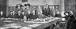 The Hungarian National Council (Hungarian: Magyar Nemzeti Tanács) was an institution from the time of transition from the Kingdom of Hungary (part of Austria-Hungary) to the People's Republic in 1918. At the congress of the Hungarian Social Democratic Party (MSZDP) in October 1918 called for the Socialist Left József Pogány minority to its own policy, which should be based on the emerging workers 'and soldiers' councils. In contrast prevailed Zsigmond Kunfi in the MSZDP that the liberal left "48" party of Count Mihály Károlyi and the bourgeois radical party of Oszkár Jászi was entered into an alliance. These three parties formed on 25 October, the Hungarian National Council (see also Aster Revolution).