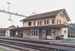 Hunzenschwil railway station (German: Bahnhof Hunzenschwil) is a railway station in the municipality of Hunzenschwil, in the Swiss canton of Aargau. It is an intermediate stop on the standard gauge Zofingen–Wettingen line of Swiss Federal Railways.[2]
