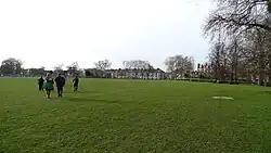 Much of the surrounding area was compulsorily purchased by Fulham Borough Council in the 1950s to create the public park, the sports arena, and council housing.[7][9] The Hurlingham Club was subsequently left with its clubhouse, tennis courts, and croquet lawns, as well as its river frontage.[7] The London County Council and Fulham Council considered calling the new open space "Hurlingham Playing Fields",[10] before deciding to retain the Hurlingham Park name.