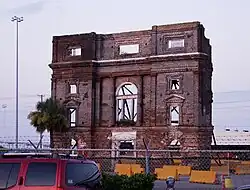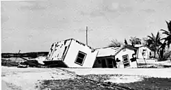 In the Florida Keys, some areas experienced "almost complete destruction".[28] In Key West, one death was confirmed, and 71 people were injured. About 564 homes were demolished, and an additional 1,382 were damaged, 583 of them severely.[29] Farther north, an estimated 75% of buildings were extensively damaged between Marathon and Tavernier. In the former, tides inundated the city and destroyed several subdivisions. Storm surge inundated parts of the Overseas Highway.[28] Six bridges between Marathon and Craig Key had been nearly or entirely swept away.[30] Many boats and docks were severely damaged or destroyed. Additionally, the pipeline supplying water to the Florida Keys was wrecked in three places.[28]