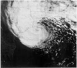 While on its erratic path off the northern Gulf Coast, Juan killed 12 people, nine of whom offshore due to overturned oil rigs or boats.[2] The hurricane directly caused about $1.5 billion in damage, making it the fourth costliest United States hurricane at the time without adjusting for inflation; it was behind only Hurricane Frederic of 1979, Hurricane Agnes of 1972, and Hurricane Alicia of 1983.[15] The damage total included losses to the oil industry, wrecked crops, and overall flooding damage, mostly in Louisiana.[2] According to the Federal Emergency Management Agency (FEMA), Juan injured 1,357 people, mostly to a minor extent.[16] Juan struck less than two months after Hurricane Elena hit the northern Gulf Coast, resulting in further damage to already ravaged areas.[8]