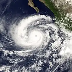 Olivia shortly after peak intensity on September 21, south of the Baja California peninsula.
