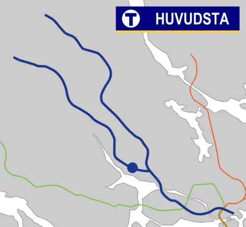 Huvudsta metro station is a station on the blue line of the Stockholm metro, located in Huvudsta, Solna Municipality. The station was opened on 18 August 1985 as part of the extension between Västra skogen and Rinkeby.[2] The distance to Kungsträdgården is 5.2 km (3.2 mi).