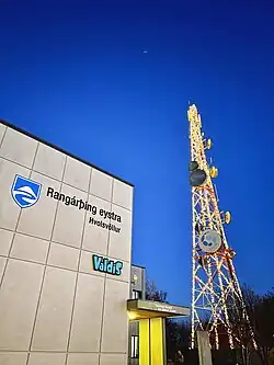 At the centre of the town is a 45m tall telecommunications tower, erected in 1976 and operated by Míla.[11][12] In 2022 the tower was fitted with Christmas lights, which were lit up during the winter, claiming to be the 'tallest Christmas lights in Iceland'.[13]