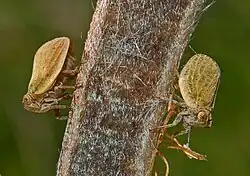 The adult planthoppers reach 5–7 millimetres (0.20–0.28 in) of length, the basic coloration of their body is mostly pale brown or yellowish, with well drawn veins on wings. The females are usually bigger than the males.