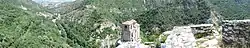 At the intersection for the Pamporovo ski resort it passes though the Pozhen Saddle (1,430 m) and after a steep descend to the village of Sokolovtsi[2] it reaches the valley of Byala reka, a tributary of the Cherna. From there, the II-86 continues south through the Byala reka valley, passing through the village of Bostina and reaching the Ustovo neighbourhood of the city of Smolyan. From Ustovo the road turns east and for 16.8 km follows the valley of the Cherna through the villages of Vlahovo, Podvis, Rovina, Taran and Ravnishta, then turns south through Srednogortsi,[2] crosses a short watershed and enters the valley of the river Arda. The road follows the valley upstream to the town of Rudozem and then through the valley of the river Chepinska reka it ascends to the Bulgaria–Greece border and the border checkpoint Rudozem–Xanthi.[2]