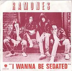 "I Wanna Be Sedated" is a song by American punk rock band Ramones, originally released on the band's fourth studio album, Road to Ruin (1978), in September 1978 and as the B-side of the UK single "She's the One" released on September 21, 1978.[2] The song was later released as a single in the Netherlands in 1979,[3] and in the U.S. in 1980 by RSO Records from the Times Square soundtrack album. It has since remained one of the band's best known songs.[4][5]