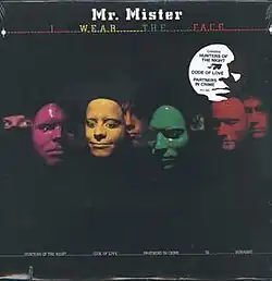 I Wear the Face is the debut studio album by American rock band Mr. Mister. It was released on March 27, 1984, by RCA Records. It reached #170 on the Billboard Top 200 chart. It was originally issued with a different cover photograph that was changed after the success of their second RCA album. The lead single from the album, "Hunters of the Night" reached a peak of #57 on the Billboard Hot 100 chart.[1]
