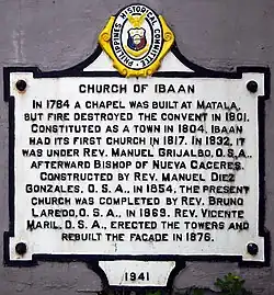 - ^ "Ibaan Church". Filipinas Heritage Library Catalog. Ayala Museum Research Team. Retrieved December 14, 2014.