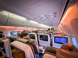 Economy cabin aboard an Icelandair Boeing 737 MAX 8