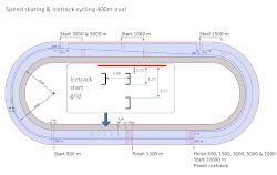 Timed races use the same format as speed skating events.[2] Various distances between 500 m and 10,000 m are completed against the clock, with a maximum of two competitors on the ice at any one time. Many ice ovals include a wire loop embedded in the ice along the finish line which can detect the passing of a transponder attached to the competitor, thus providing automated timing (often linked to the internet).
