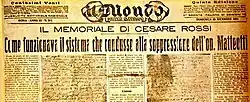 After the murder of Giacomo Matteotti on 10 June 1924, it published a memoir of the Secretary of Mussolini which was an indictment of the latter. It also published the first extracts from the Cesare Rossi Memorial (27 December 1924) and the "Manifesto of the Anti-Fascist Intellectuals" (1 May 1925).