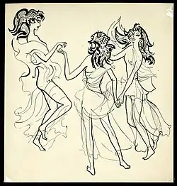 Drawing for Il ballo delle ingrate by Peter Hoffer (1924-2000; undated). | |