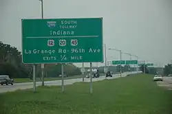 On the north side of Lockport, IL 171 bends northeast onto Archer Avenue. It intersects Interstate 355 (I-355, Veterans Memorial Tollway) just south of Lemont. At the community of Sag Bridge, it is joined by IL 83, and the two routes run concurrently for about one mile (1.6 km) to cross the Calumet Sag Channel on the Archer Avenue Bridge.[4][5] The two routes split again immediately north of the bridge, as IL 83 continues north while IL 171 resumes its northeastward course, passing St. James at Sag Bridge Church and Cemetery, listed on the National Register of Historic Places.[6] It then makes a scenic passage through the Palos Division[7] of the Forest Preserve District of Cook County, a very large natural preserve. Leaving the forest preserve, it passes through the village of Willow Springs which was built strung out along the road. IL 171 has a complex interchange with US 12/US 20/US 45 (LaGrange Road) and I-294 (Tri-State Tollway) on the border between Willow Springs and Justice. At this point, it begins to parallel two roads to the east, Illinois Route 43 and Illinois Route 50. It will parallel these two roads for the rest of its route. It continues northeastward through Justice, passing Bethania and Resurrection Cemeteries. It then passes through small sections of Bridgeview and Bedford Park on its way into Summit.