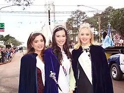 National Queen of the Immigrant (center), 1° princess (left) and 2° princess (right) from the year 2004, in the beginning of XXVII National Immigrant's Festival