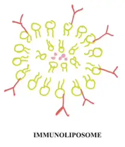 Immunoliposome therapy is a targeted drug delivery method that involves the use of liposomes (artificial lipid bilayer vesicles) coupled with monoclonal antibodies to deliver therapeutic agents to specific sites or tissues in the body.[1] The antibody modified liposomes target tissue through cell-specific antibodies with the release of drugs contained within the assimilated liposomes.[1] Immunoliposome aims to improve drug stability, personalize treatments, and increased drug efficacy.[1] This form of therapy has been used to target specific cells, protecting the encapsulated drugs from degradation in order to enhance their stability, to facilitate sustained drug release and hence to advance current traditional cancer treatment.[1]