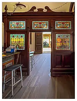 The building retains almost all of its original fabric and the interior layout is typical of nineteenth century hotels. It is exceptionally intact down to furniture, fittings and minor items of hotel equipment. The ground floor contains the bars, dining room and furniture and fittings, a billiard room and table, kitchen, store rooms and office. Features include an elaborately constructed and decorated bar with cedar and glass fittings, beer engines and ceramic taps.[1]