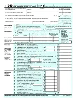 The 2015 edition of Form 1040, the tax form used for personal federal income tax returns filed by U.S. residents