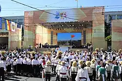 Being a public holiday it is a free day for most of the people and employees, and in common with some other holidays, most companies do not open on 27 August each year.[9] On this day, the President of the Republic gives a public speech, and officials lay flowers at the Stephen the Great Monument.[10] A concert is also organized at the Great National Assembly Square.[11] In 2001, 2011, 2016 and 2021, military parades have been held in the center of Chișinău, commemorating significant anniversaries of independence.[12][13][14][15]