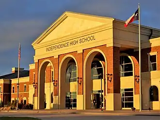 Independence High School is a public high school located in the city of Frisco, Texas (USA) and classified as a 5A school by UIL. It is a part of the Frisco Independent School District located within Collin County. It opened in the fall of 2014 to freshmen, sophomore, junior and senior students.[3] The first class to graduate was the class of 2016. For the 2021-2022 school year, the school was rated "A" by the Texas Education Agency.[4]